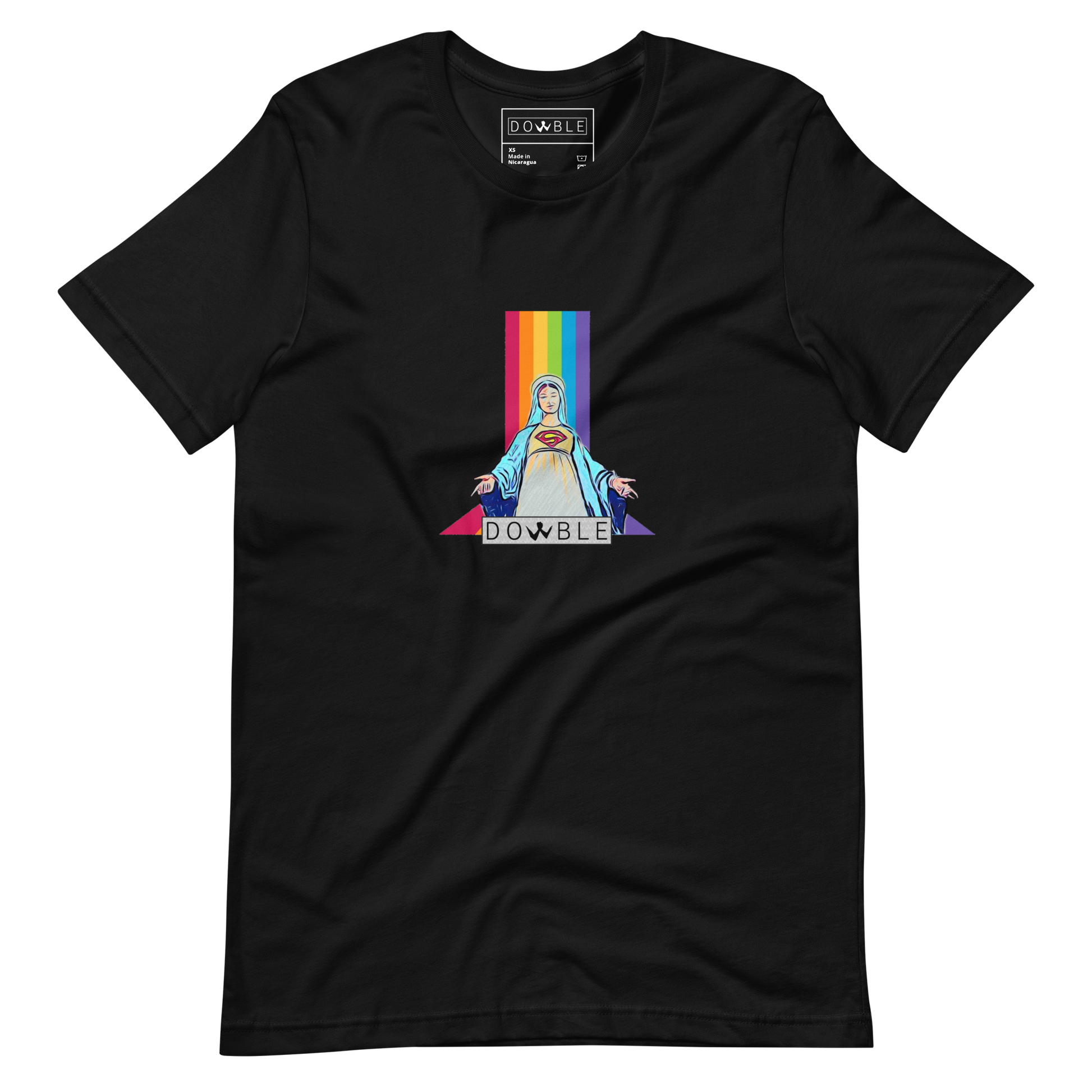 La t-shirt Holy presenta una stampa molto originale, combina l'iconografia cristiana con quella del celebre supereroe dei fumetti.